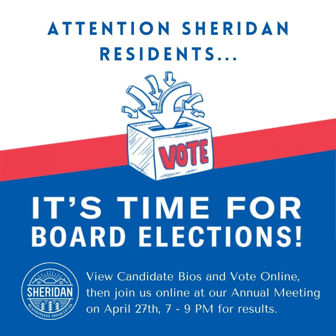 Thanks to all 30 folks who joined the 2021 Sheridan Neighborhood Annual Meeting on April 26th, 2021! For those who were not able to make it, we have a recording available. Watching this is a great way to learn about what we have been up to in the last year and how to get involved in this upcoming year.